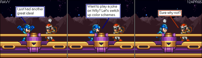 Another staple of sprite comics: Mega Man is an Idiot Joke.