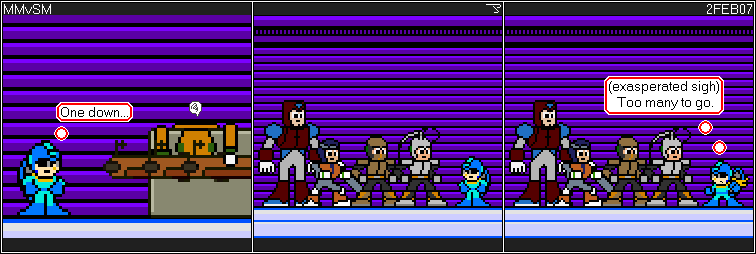 Mega Man and Proto Man invade Wily's castle. They switch up palettes for the heck of it.